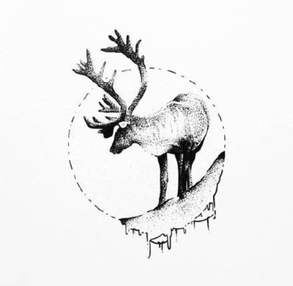 点刺小鹿手稿:几何点刺圆形中的小鹿纹身素材图片