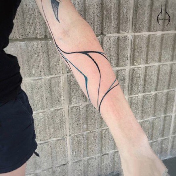 25款男性黑色手臂线条纹身点刺技巧半甲纹身图案