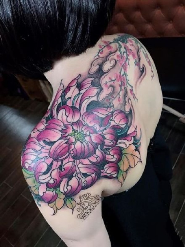 菊花纹身--9张漂亮的传统菊花纹身作品图案