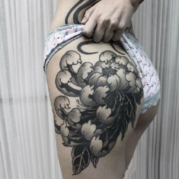 黑灰菊花:手臂和腿部上好看的黑灰菊花纹身图案
