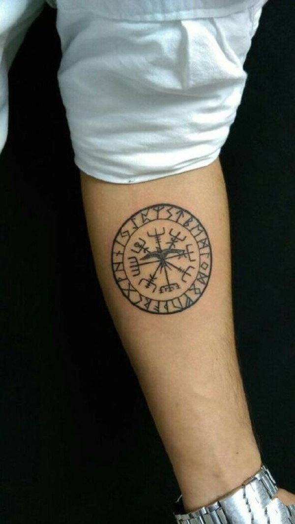 一组维京罗盘的符号图腾纹身图案