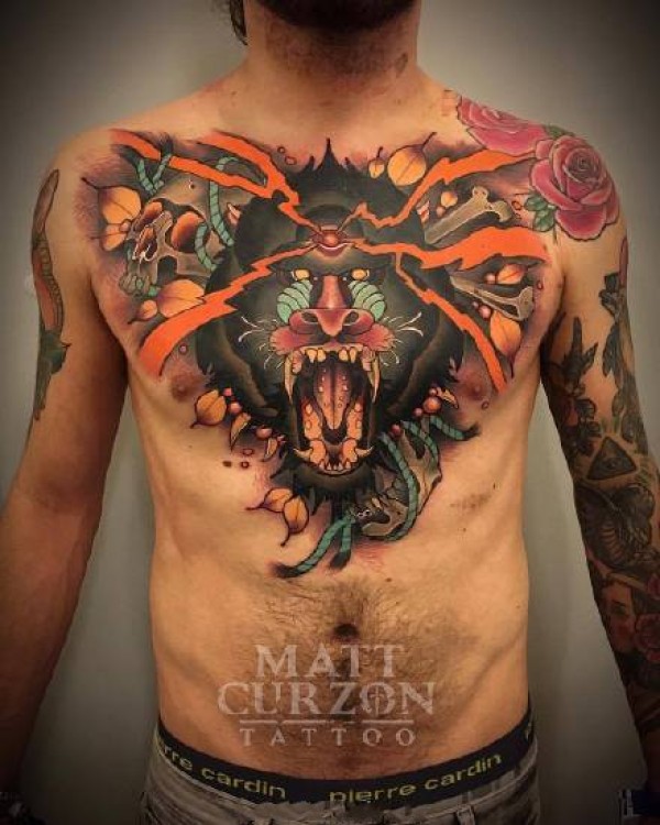 适合男士的9张帅气大花胸纹身作品图案