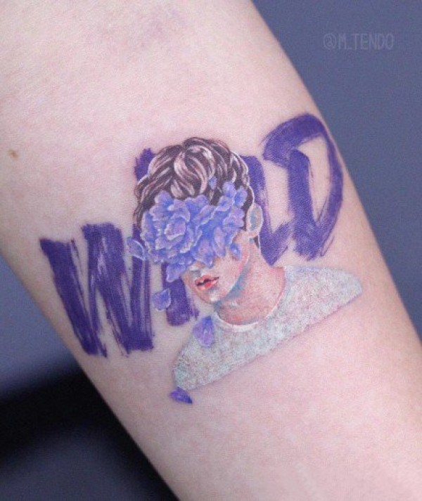蓝色大蝴蝶和紫色小蝴蝶纹身
