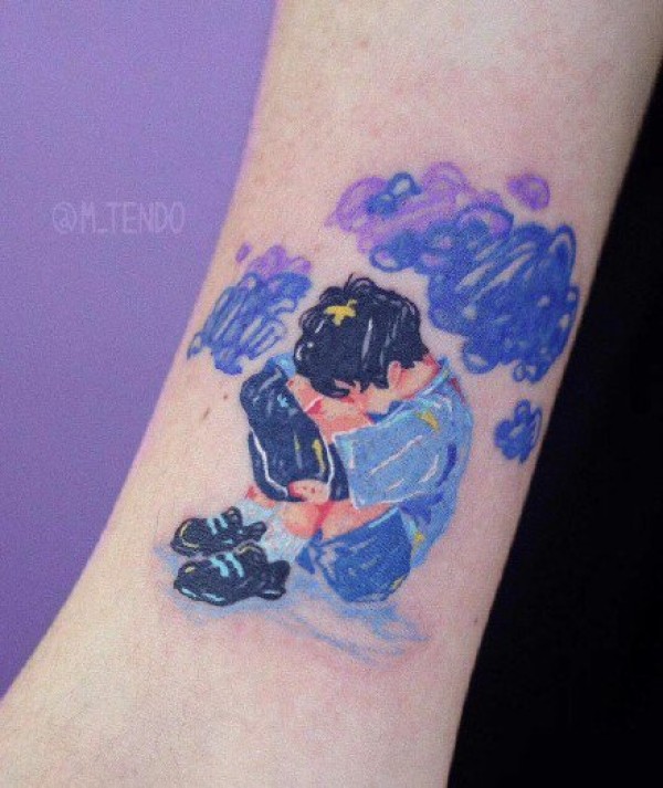 蓝色大蝴蝶和紫色小蝴蝶纹身