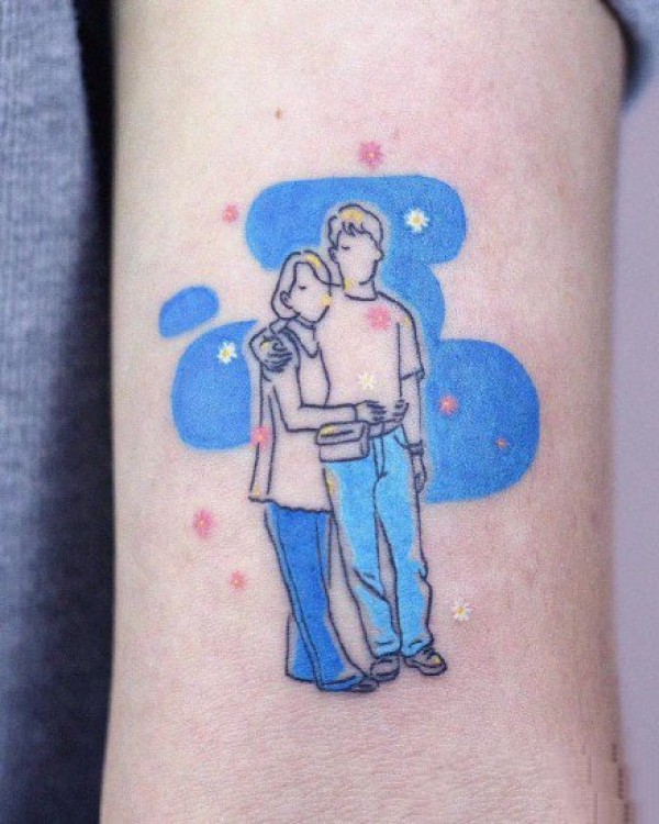 蓝色大蝴蝶和紫色小蝴蝶纹身