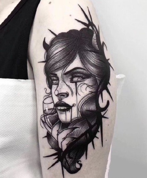 深黑色的一组暗黑系女郎纹身图片