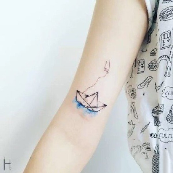 纸船刺青:小清新的一组小纸船纹身图案9张