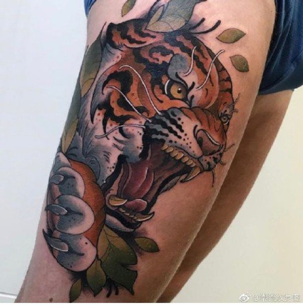 男性们都喜欢这样帅气的凶猛的老虎纹身图案