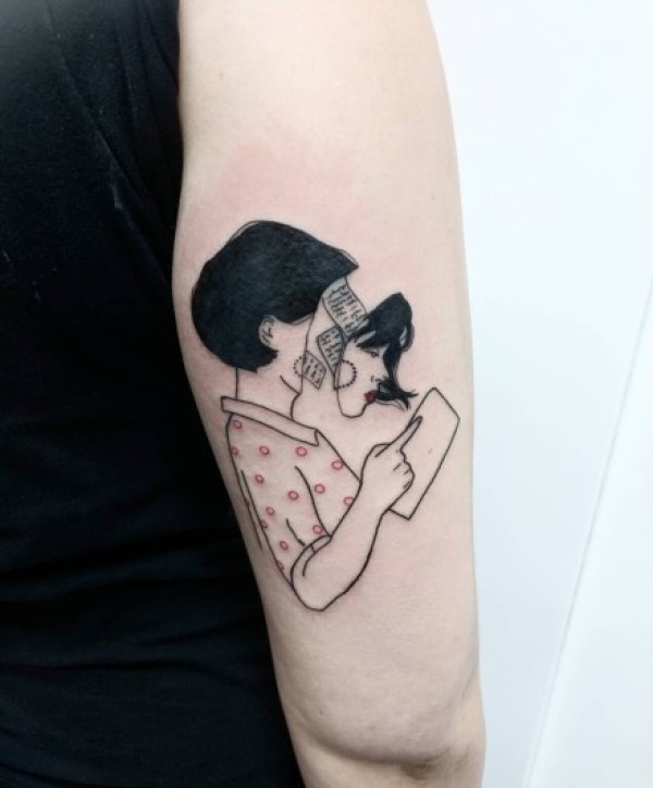 人脸线条纹身:简约抽象风格的一组线条人脸纹身图案