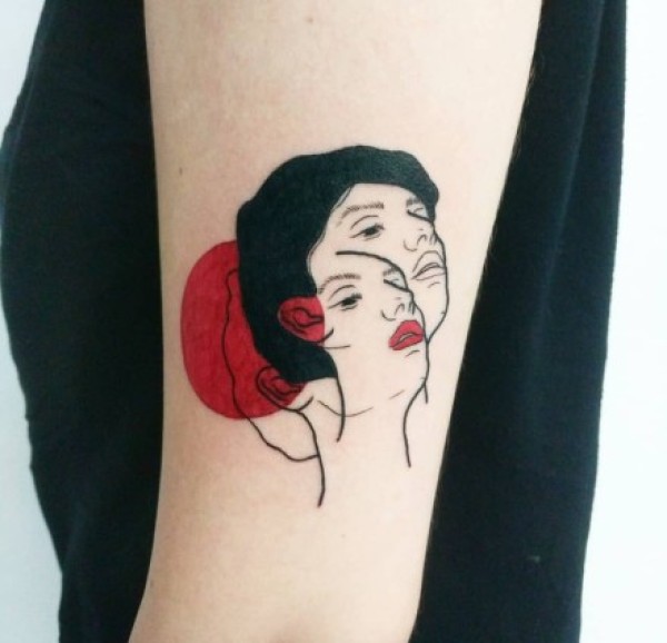 人脸线条纹身:简约抽象风格的一组线条人脸纹身图案