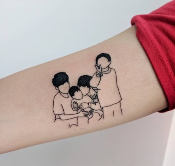 人脸线条纹身:简约抽象风格的一组线条人脸纹身图案
