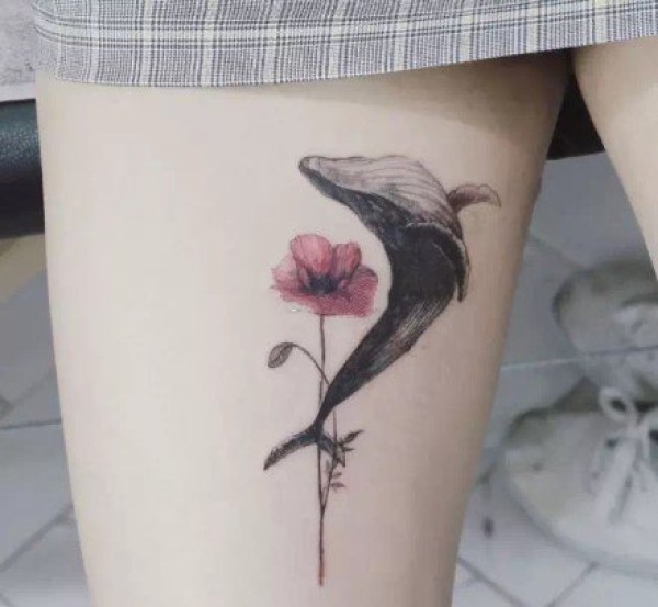 纹身小鲸鱼 9张小清新黑色小鲸鱼纹身图案