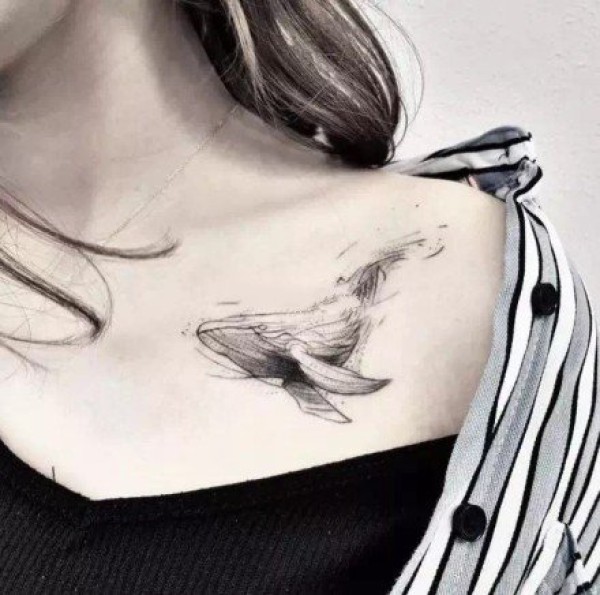 萌萌的鲸鱼纹身--适合女生的小清新鲸鱼纹身图案作品