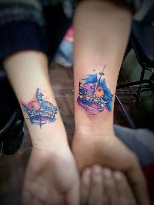 适合情侣的一组成对的皇冠纹身作品