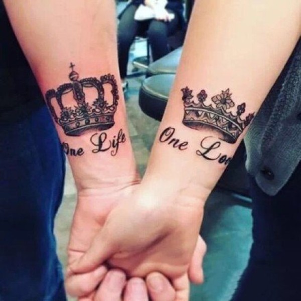 情人同款K&Q的国王皇后的皇冠纹身图案欣赏