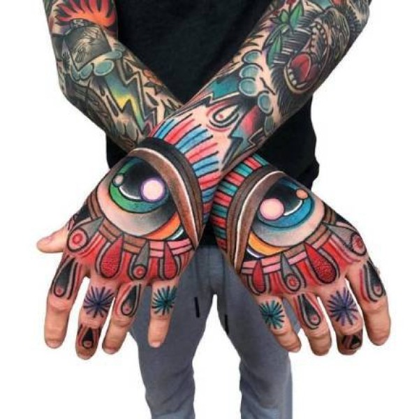 oldschool风格的拼接花臂纹身作品欣赏