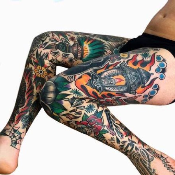 传统风格的一组男性花臂和花腿纹身图案欣赏