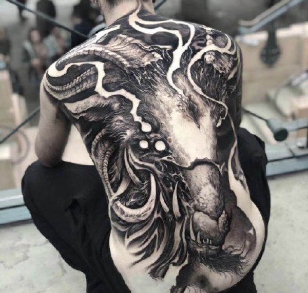新传统风格的9张男性黑灰大满背纹身图案图片