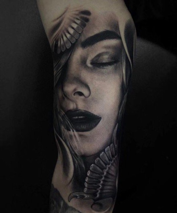 心脏纹身图案 女生手臂上黑灰纹身心脏纹身图案