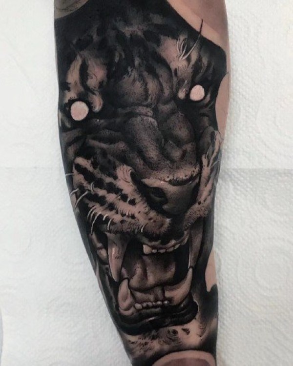 老虎图腾纹身 多款黑灰纹身点刺技巧老虎纹身图案
