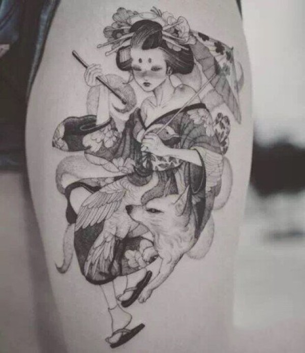 艺伎纹身--一组独特创意的日式艺妓纹身图案作品