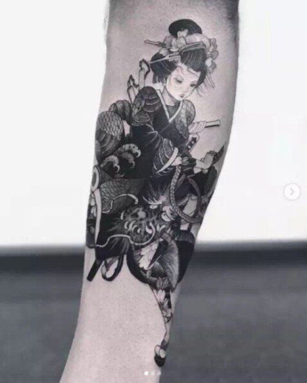 艺伎纹身--一组独特创意的日式艺妓纹身图案作品