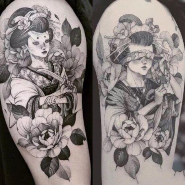 艺伎纹身--一组独特创意的日式艺妓纹身图案作品