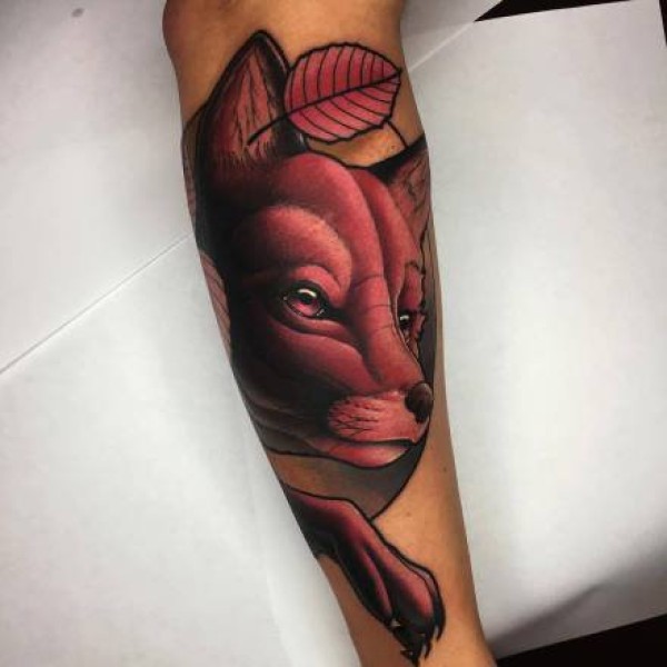 暗红系的一组大腿动物纹身作品图案