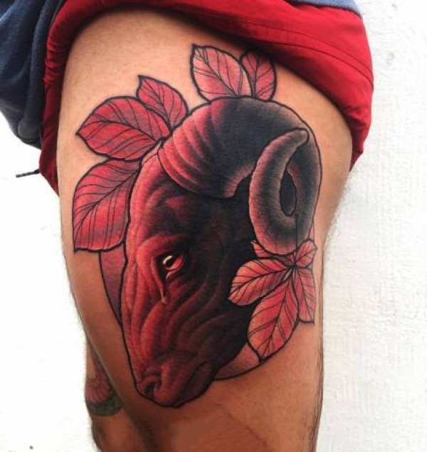 暗红系的一组大腿动物纹身作品图案