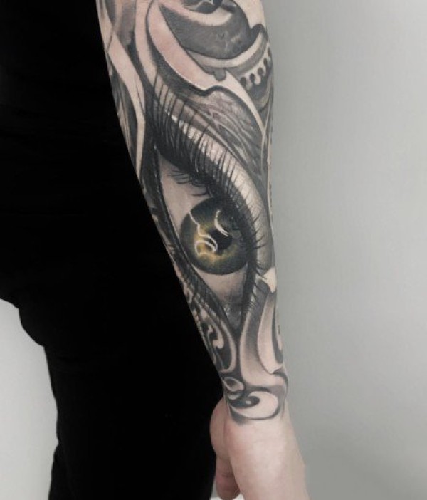 欧美花臂纹身_22张霸气黑灰欧美大黑花臂纹身图案作品图片