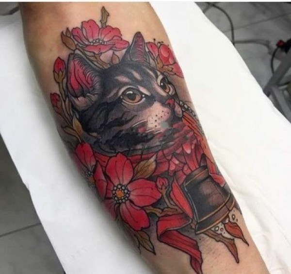手背猫纹身:9张大花手背的猫纹身图案赏析