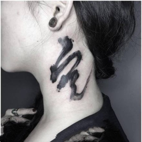 水墨书法风格的纹身-每个字背后都蕴含着深刻的含义