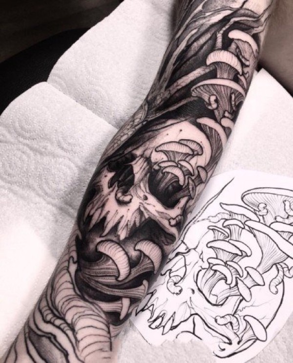 暗黑纹身图案--16张暗黑风格的手臂和腿部的纹身图案