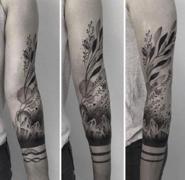 很富有设计感的手臂黑白色创意纹身图案