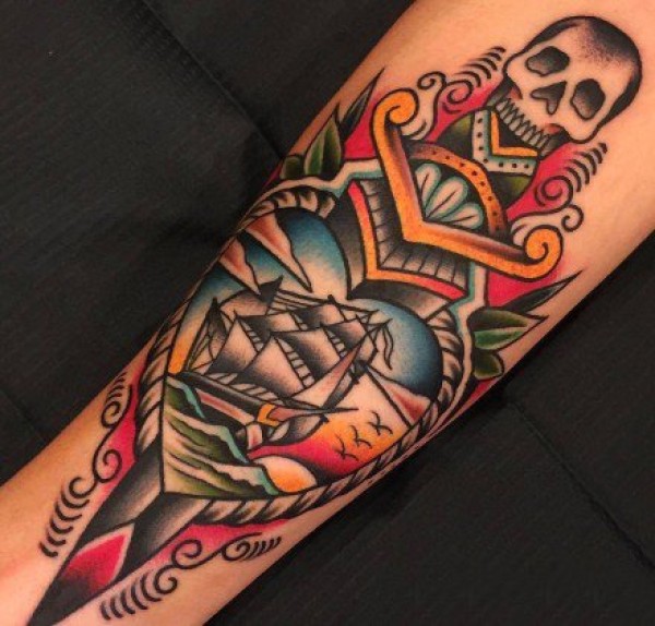 oldschool小臂纹身 18款彩色oldschool风格的小手臂纹身图