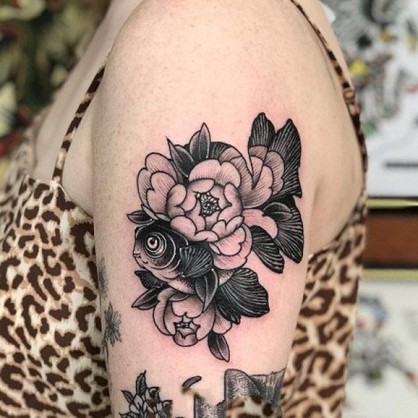 肩部彩绘纹身技巧小清新植物纹身花朵纹身树枝纹身金鱼纹身图片