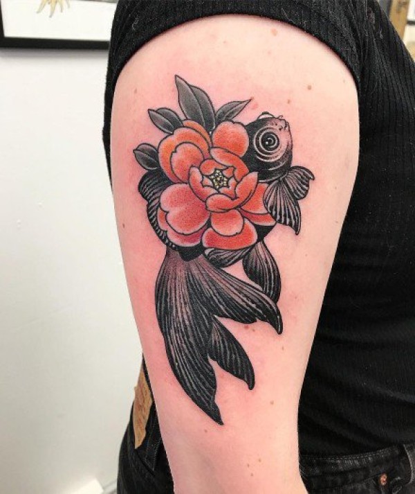 金鱼纹身 漂亮的9张唯美彩色小金鱼纹身图案