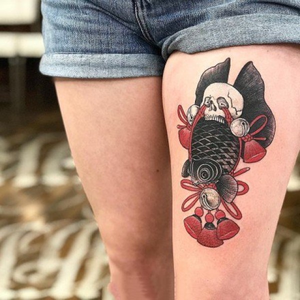 金鱼纹身 漂亮的9张唯美彩色小金鱼纹身图案