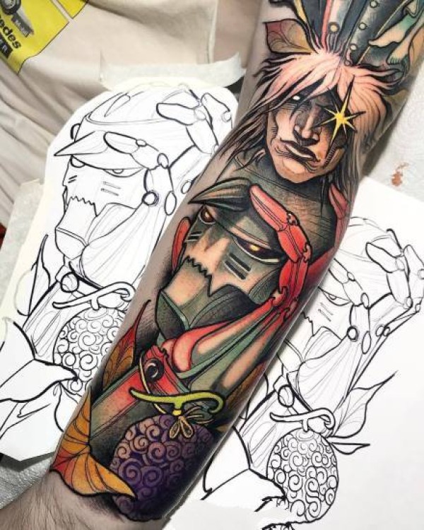 一组17张动漫海贼王路飞纹身手稿图案素材