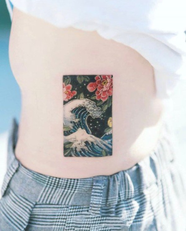 花朵纹身图案-20张身体各个部位传统彩绘纹身图案
