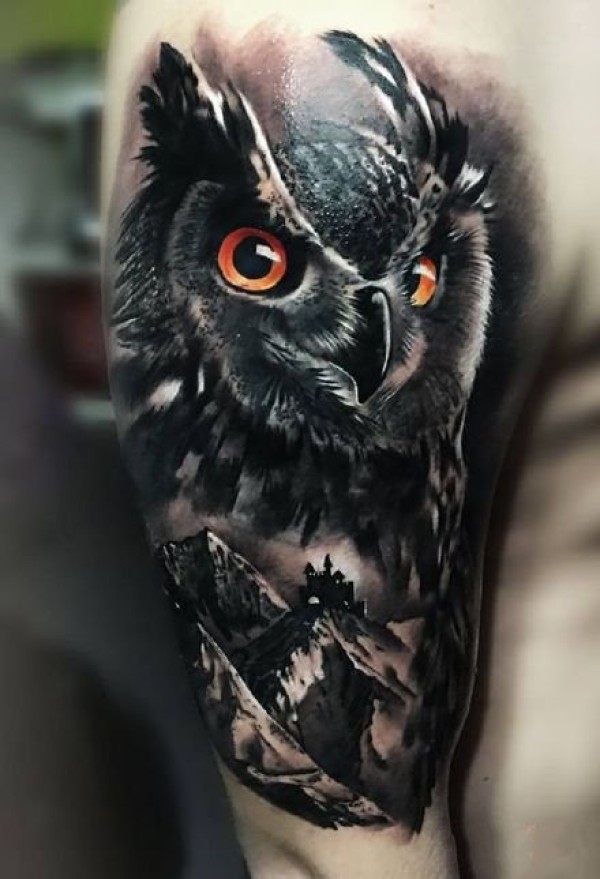 9张黑暗系3d写实猫头鹰纹身图案作品