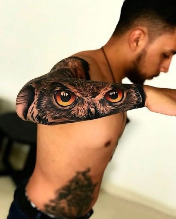 胳膊一张创意猫头鹰文身作品