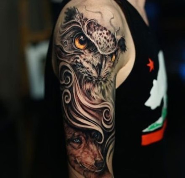 9张黑暗系3d写实猫头鹰纹身图案作品