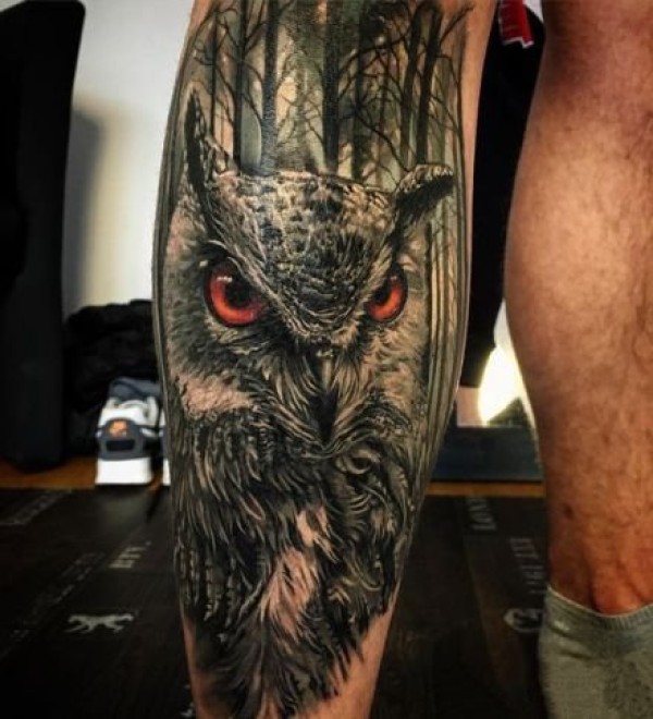 9张黑暗系3d写实猫头鹰纹身图案作品