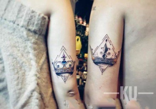 适合情侣的一组成对的皇冠纹身作品