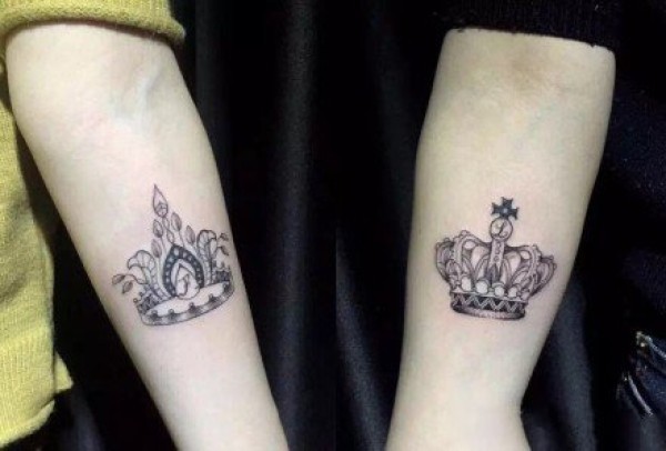 情人同款K&Q的国王皇后的皇冠纹身图案欣赏