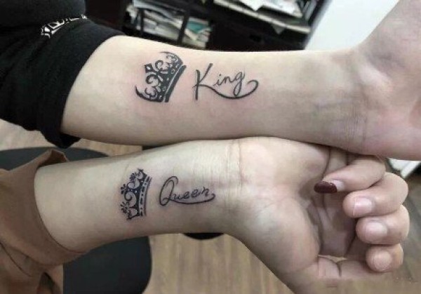 情人同款K&Q的国王皇后的皇冠纹身图案欣赏