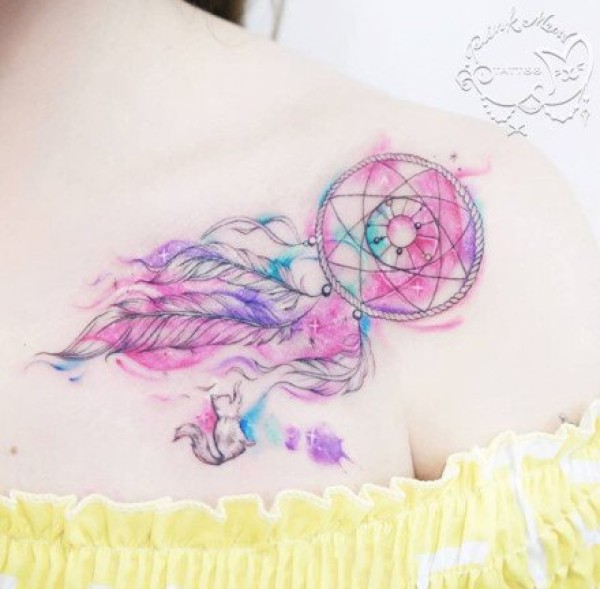 适合女孩子的小清新捕梦网彩色纹身图案