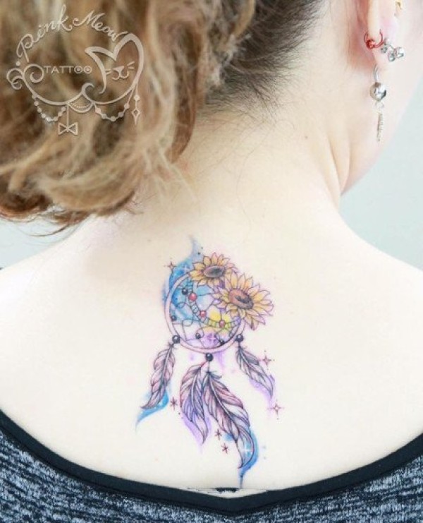 适合女孩子的小清新捕梦网彩色纹身图案