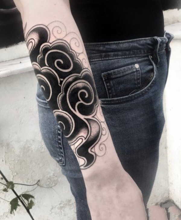 日式浮世绘腾云祥云主题的一组小纹身图片